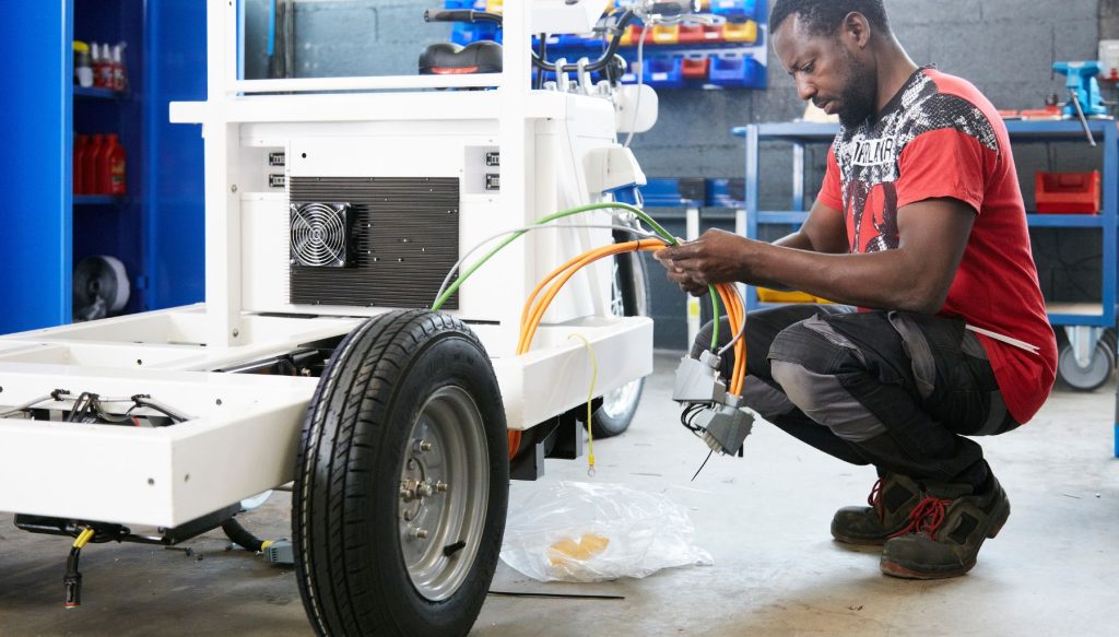 Produit au sein de l’Unité Élémentaire de Production (UEP) de Vénissieux, les vélos cargos bénéficie des standards de qualité les plus stricts de l’industrie automobile française.