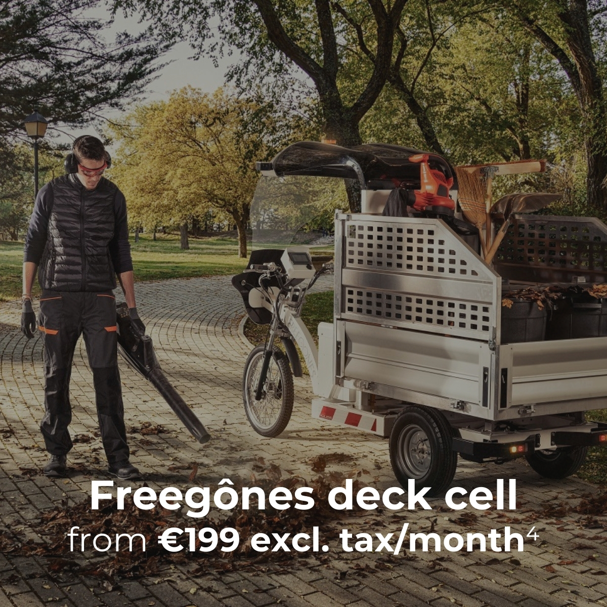 ⁴ From 199€/month with contribution in LLD: Offer valid until 30/09/2024, for a 60-month LLD reserved for professionals on the new Freegônes cellule plateau long, excluding option and guarantee: LLD with first rent increased to 3600€ HT followed by 59 rents at 199€ HT.