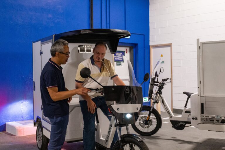 Les représentants de ministères, métropoles, villes et fédérations de transporteurs sont venus nous rendre visite, pour découvrir notre nouveau triporteur le 17 juin. Chez Kleuster, nous sommes convaincus qu’une mobilité plus durable constitue un enjeu important dans nos sociétés évoluant à grande vitesse. C’est pourquoi il nous semblait essentiel de rencontrer ceux qui façonnent nos villes d’aujourd’hui.